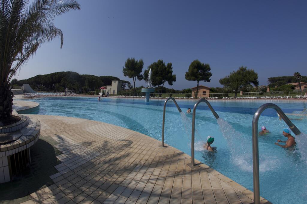 Piscina: parco piscine con giochi d’acqua per bambini e per adulti, attrezzato con lettini, cuffia obbligatoria, apertura piscine da Maggio a Settembre