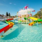 Piscina: piscine per bambini e piscine per adulti, con scivoli ed idromassaggio, attrezzate con ombrelloni e lettini, cuffia obbligatoria. Nuova piscina da 2100 mq con spray park e acquascivoli