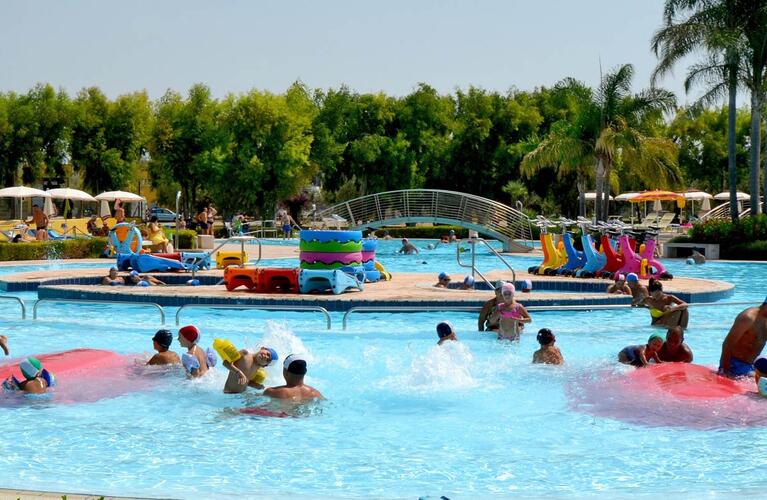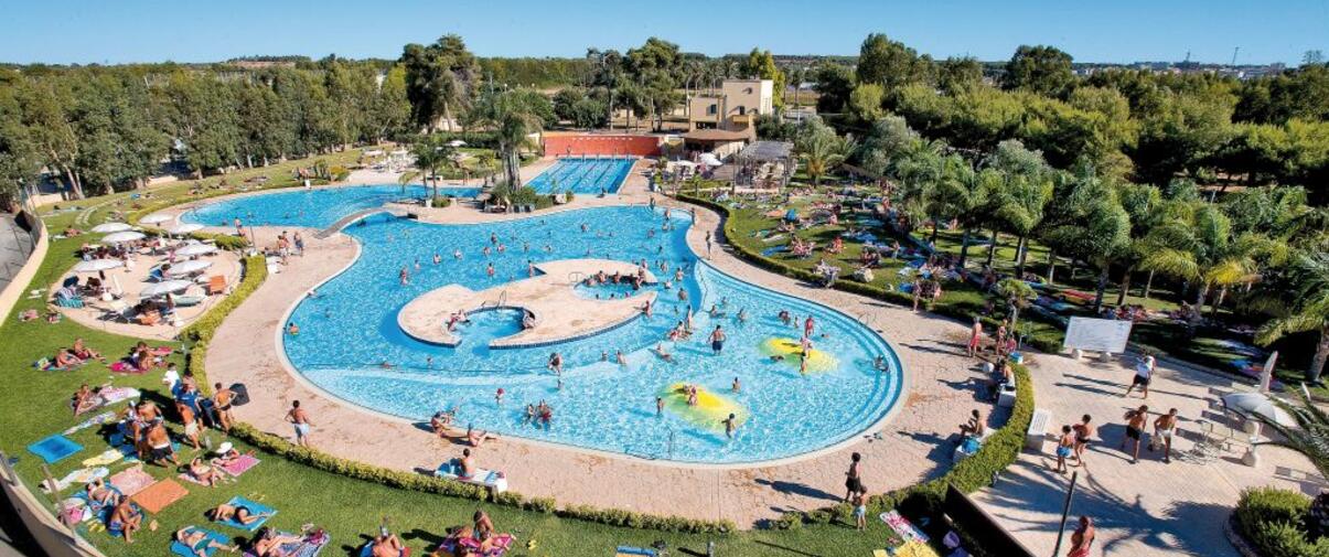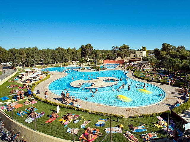 Piscina: grande piscina con zona per bambini con isole e zona per adulti con vasche idromassaggio, piscina lunga 20 mt, attrezzate con ombrelloni e lettini (a pagamento), cuffia obbligatoria; apertura piscine dal 01/05/21 al 30/09/21