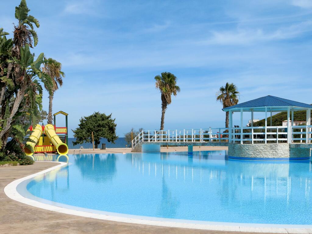 Piscina: piscina per bambini con scivoli e per adulti in posizione panoramica con vista sul mare, attrezzata con ombrelloni e lettini (a pagamento), cuffia obbligatoria; apertura piscine dal 15/05/21 al 26/09/21
