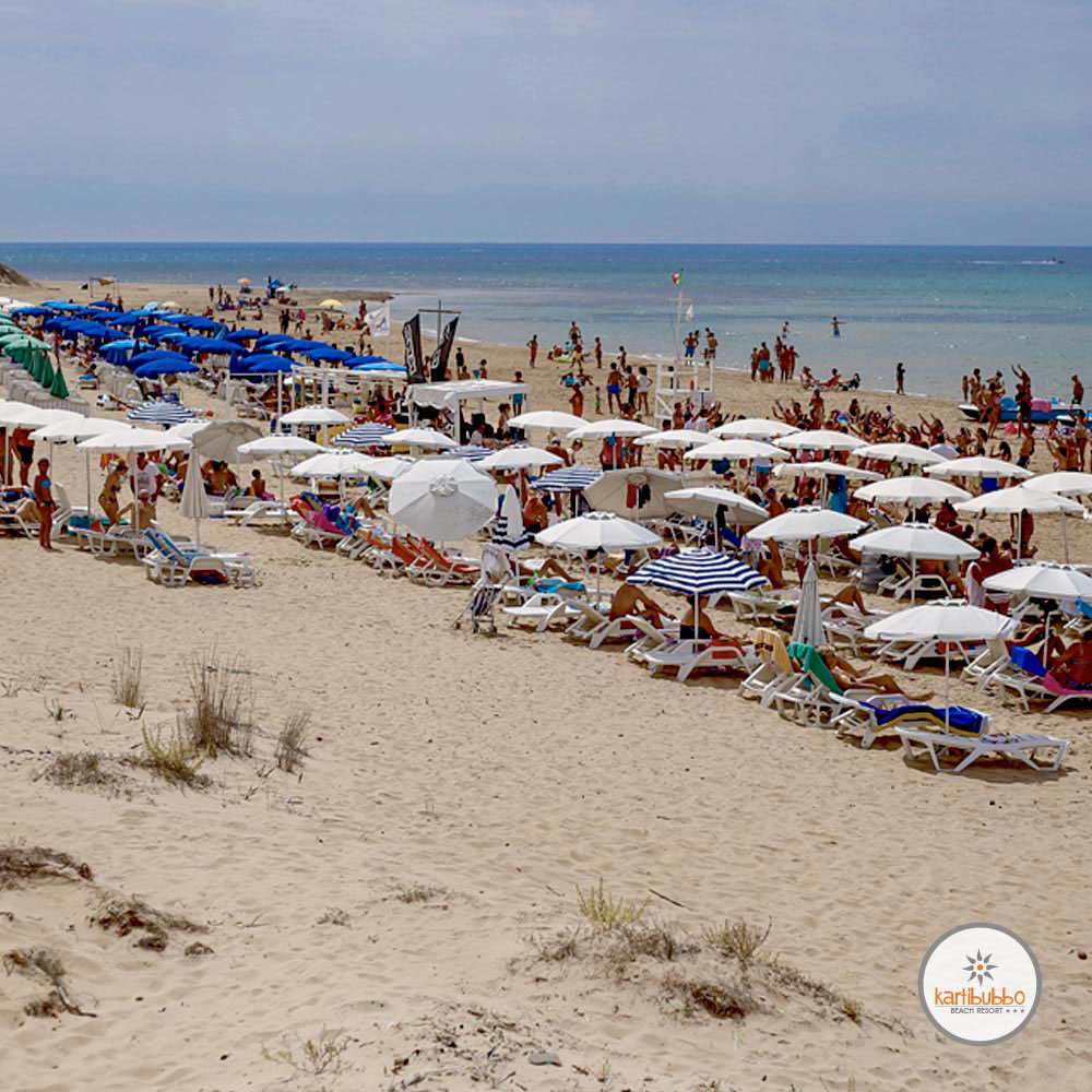 La spiaggia del Kartibubbo Beach Resort è il fiore all’occhiello del villaggio che regala emozioni uniche con tramonti magici riflessi su un mare pulito ed una sabbia dorata e finissima, in una baia cinta da dune e il faro sulla destra a farne da padrone. La spiaggia, accessibile da un vialetto interno a soli 100 metri dagli appartamenti e dalle villette, è attrezzata con lettini ed ombrelloni, è dotata di docce, campo da beach volley e di uno snack-bar ideale per spuntini, pranzi veloci e aperitivi.