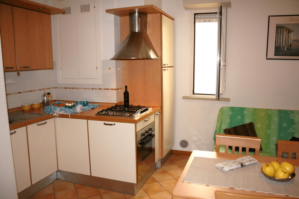 Descrizione alloggio: Appartamento trilocale per 5 posti letto: camera matrimoniale, una camera a due letti, soggiorno con divano letto ed angolo cottura, bagno.