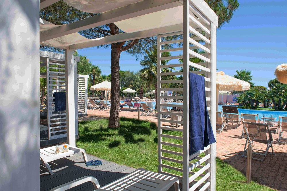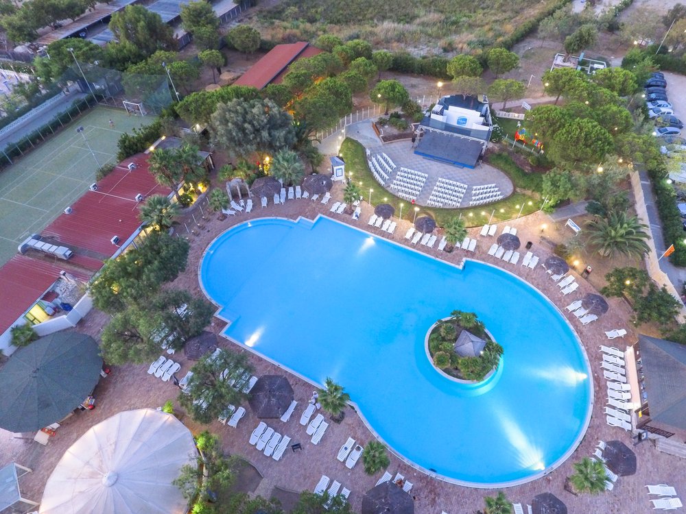 Include uso della grande piscina con zona idromassaggio e zona bambini, attrezzata con ombrelloni e lettini (ad esaurimento), ping pong, beach volley, campo polivalente calcetto/tennis in sintetico, animazione diurna con giochi, tornei sportivi e sedentari, corsi collettivi sportivi, ginnastica, aerobica, stretching e animazione serale con spettacoli, musica e discoteca. Servizio spiaggia.
