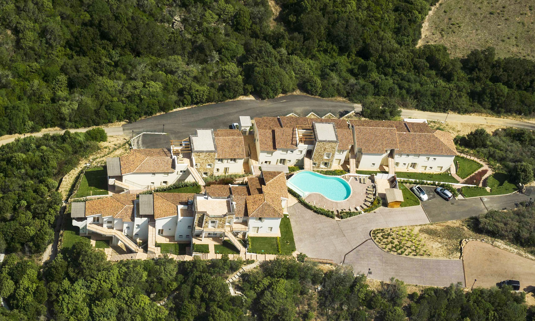 Gli appartamenti sono disposti su differenti livelli e seguono la conformità del terreno; sono ampi ed elegantemente arredati con finiture di pregio, alcuni di essi dispongono di lavastoviglie e doppi servizi (la maggior parte con doccia).