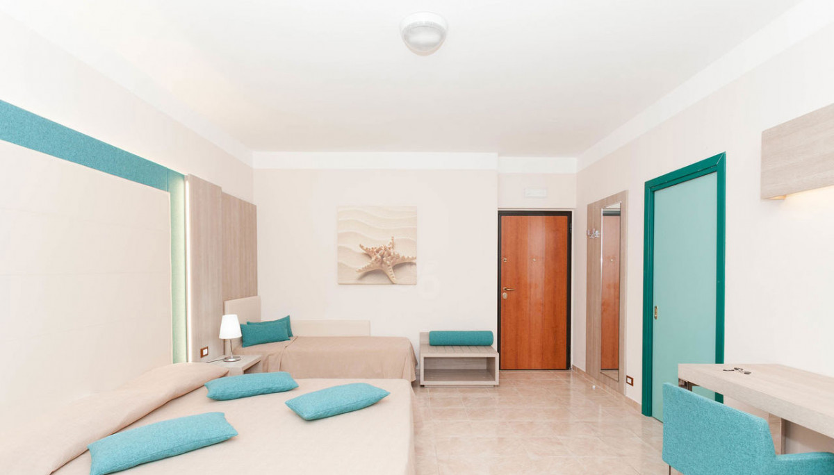Le unità abitative, al piano terra o primo piano, sono tutte dotate di telefono, tv, aria condizionata, frigobar, cassetta di sicurezza, servizi con doccia e asciugacapelli; alcune con angolo cottura (attivazione su richiesta con supplemento). Disponibili camere Standard doppie/matrimoniali con possibilità di 3° letto e 4° letto in divano letto a castello (lunghezza 1,80 mt), alcune con balcone, camere Family per 4/5 persone composte da 2 camere comunicanti con ingresso indipendente e doppi servizi, alcune con balcone, Bilo Family per 3/6 persone composti da camera matrimoniale e soggiorno con 2 divani letto singoli + 1 divano letto a castello, Trilo Family per 4/6 persone composti da soggiorno con 2 divani letto singoli, 2 camere matrimoniali e doppi servizi. Su richiesta sistemazioni per diversamente abili.