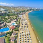 A 100 m ca, ampia, di sabbia dorata e fine, privata e attrezzata, raggiungibile a piedi. Servizio spiaggia incluso nella Club Card a partire dalla 3° fila (1 ombrellone + 2 lettini a camera).