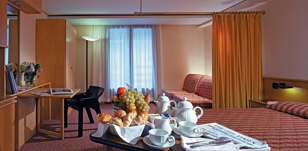 43 camere presso il “Combal” e 42 presso il “Miage”, tutte con tv, telefono, minibar (consumazioni a pagamento), cassetta di sicurezza, balcone o terrazzo, servizi con asciugacapelli. 3°/4° letto in sofa bed.