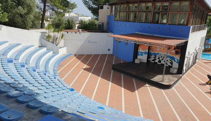 ATTREZZATURE: Il Maritalia è diviso in 3 zone: la ZONA OASI è la parte più dinamica del villaggio dove si svolgono tutte le attività sportive, in prossimità di questa zona troviamo le piscine, l’anfiteatro gli impianti sportivi ed il Bar “Oasi”; la ZONA SERVIZI dove è situata la Hall, la Reception, la Biberoneria, la Spa “Elaia”, il Ristorante “Rosa dei Venti” ed esternamente il Bar “Anfora”; la ZONA VILLETTE è costituita da caratteristiche costruzioni in stile moresco su due piani interconnesse da vialetti con un folta vegetazione rampicante e ombreggiante. 3 piscine di acqua dolce per un totale di circa 1.000 mq: una regolamentare di mt. 25 x 12,5, con 5 corsie, una per bambini, una grande circolare con giardinetto di palme al centro per il relax degli ospiti. Piccolo “Fortino” per i bambini del Mini Club con piscina a loro riservata. Alle spalle delle piscine vi è un grande anfiteatro