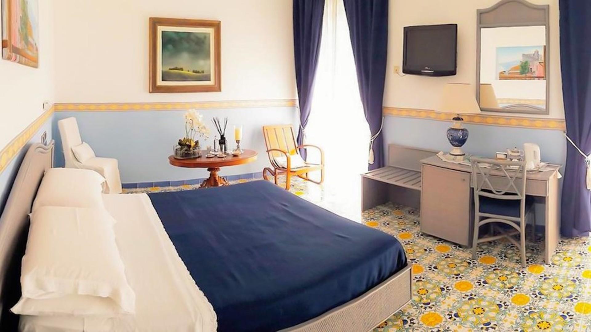 CAMERE: Graziose ed accoglienti, sono arredate con semplicità e cura del dettaglio. Si dividono in matrimoniali, triple e quadruple, tutte dotate di servizi privati con doccia o vasca, tv satellitare, telefono diretto, frigo bar, climatizzatore, cassetta di sicurezza, balcone o terrazza.
