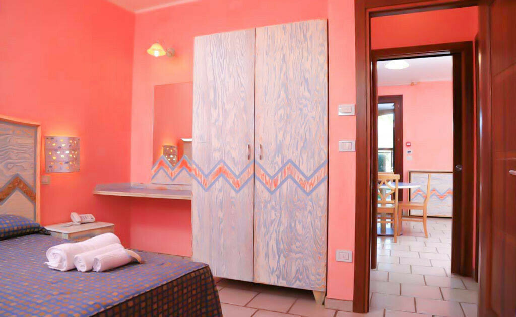 - Family Room 2/3 posti primo piano (Mq 35): nasce come monolocale, ma con l'arredamento è stato possibile creare due ambienti separati. Si trova nel Comparto A del villaggio