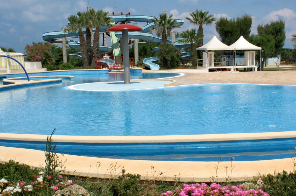 Immerso nel tipico paesaggio salentino tra macchia mediterranea e mare cristallino, accoglie famiglie e bambini grazie al suo divertente acquapark ricco di scivoli e giochi d’acqua.