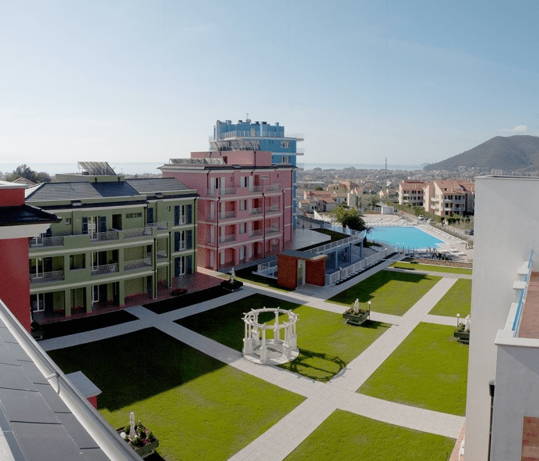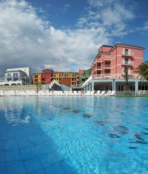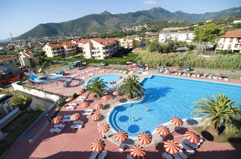 ATTENZIONE PER QUESTA STRUTTURA è OBBLIGATORIO IL PAGAMENTO (sul posto) della tessera che consente l’ingresso alla piscina interna riscaldata con massaggio cervicale e cromoterapia. € 50,00 ad appartamentoÈ il nuovo punto di riferimento, a Loano, per i vostri soggiorni di relax, di divertimento, sportivi o di business nella Riviera Ligure di Ponente. È situato a circa 900 m dal mare, in una zona residenziale lontana dal traffico cittadino, ma a pochi minuti a piedi dai servizi e dal centro. La grande piscina esterna di 800 mq, presenta un’area idromassaggio, due corsie natatorie da 25 m e una zona ad acqua bassa particolarmente adatta ai bambini ed ai loro primi passi in acqua. La piscina, inoltre, è circondata da un ampio solarium attrezzato con lettini. In più, a vostra disposizione, ampi giardini e spazi relax all’interno del complesso.