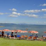 Spiaggia: in parte sabbiosa, in parte in erba e ghiaia con fondale digradante, libera e attrezzata (a pagamento), beach bar