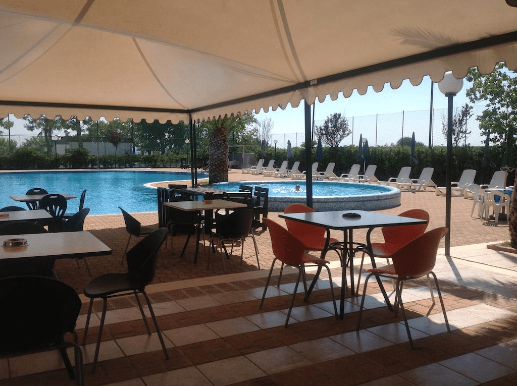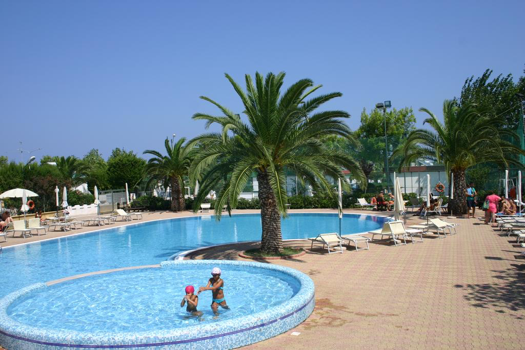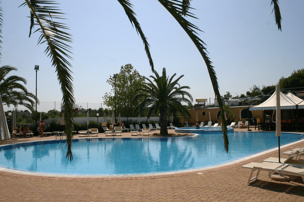 La struttura turistica dispone di due bellissime piscine, una per i bambini e una per gli adulti, con lettini e ombrelloni a disposizione della clientela. Nell’area si trova il bar principale e il palco degli animatori per le varie attività diurne.