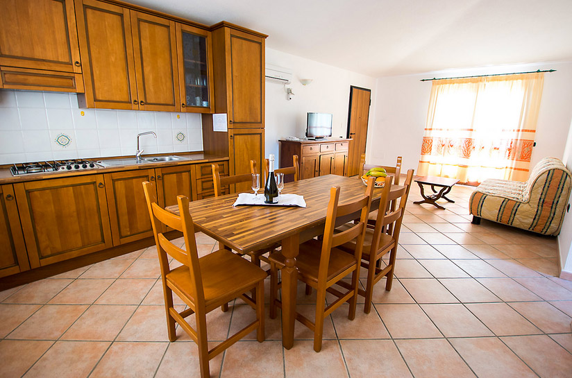 Gli appartamenti sono disposti su tre piani, dispongono di balcone o veranda attrezzati con tavolo, sedie, stendino. Bagno privato con doccia, asciugacapelli. TV LCD, cassetta di sicurezza, telefono, cucina (ubicata nel soggiorno o in veranda) attrezzata con lavello, stoviglie, pentolame, caffettiera e frigo e kit per pulizie.