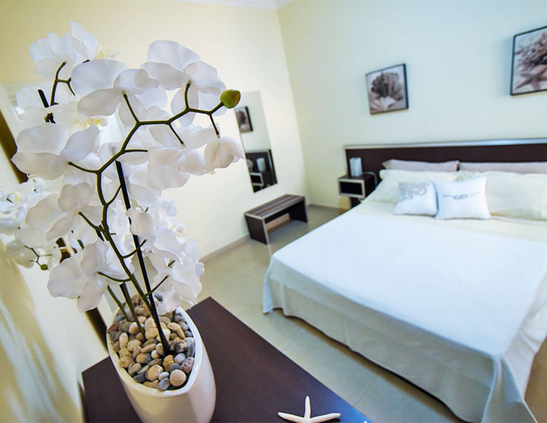 Gli appartamenti al primo e secondo piano, tutti serviti da ascensore, hanno un ingresso indipendente, dispongono tutti di aria condizionata, TV, angolo cottura, frigo bar, servizi, sono finemente arredati e corredati di tutto il necessario per un piacevole soggiorno.