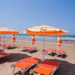 Spiaggia: Il lido privato, sulla spiaggia di sabbia fine dorata, è raggiungibile a piedi dall’hotel percorrendo soli 150 metri ed è attrezzato con spogliatoi, servizi igienici,