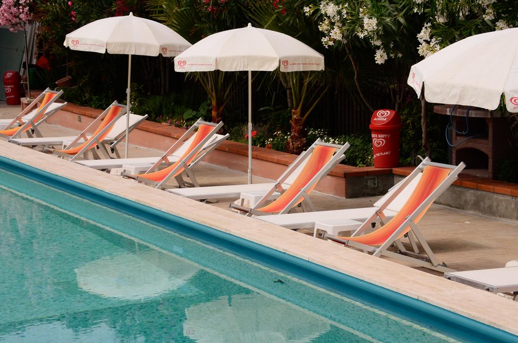 La zona comune più apprezzabile è la piscina olimpionica con una superficie di 250 mq, una capienza di 510 mc. di acqua, una profondità minima di 1 metro e massima di 3 metri. La superficie adiacente è circondata da un giardino di palme e colorati oleandri ed è attrezzata con sdraio, lettini ed ombrelloni. A bordo piscina si trova un barbecue a gas a disposizione di gruppi di amici che desiderano cimentarsi nella cucina alla griglia, e che possono degustare carne o pesce a bordo piscina nelle serate estive.