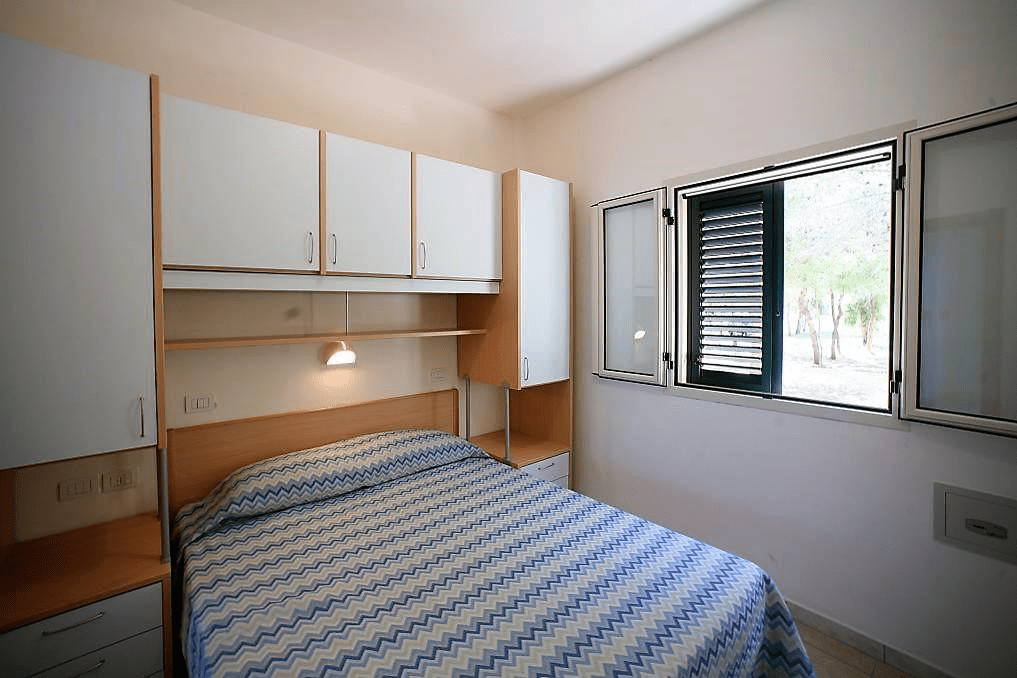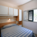 Appartamento in muratura trilocale: soggiorno con angola cottura, 2 camere matrimoniali, possibilità di divano con letto estraibile o a castello, servizi, veranda coperta, TV, aria condizionata. Solo il trilo 6 posti è dotato di doppi servizi e ha capienza massima di 7 posti letto