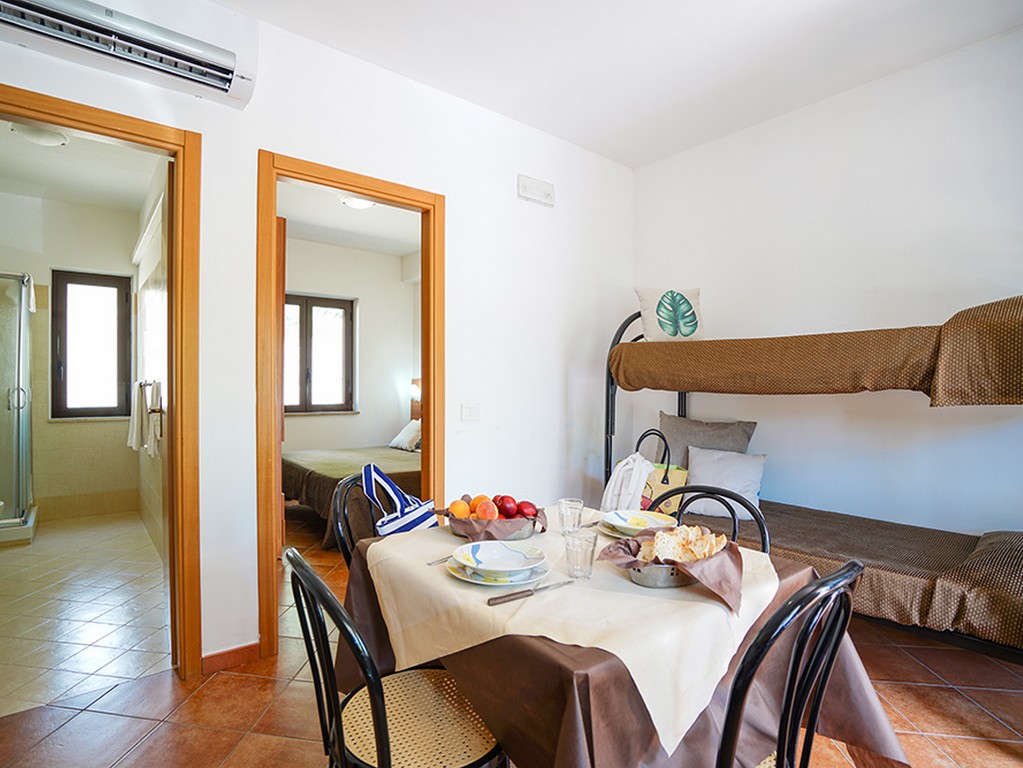 Bilocale (mq35): (4 posti letto) 2 ambienti, soggiorno con angolo cottura e letto a castello, camera matrimoniale, possono essere al primo piano con terrazzino o a