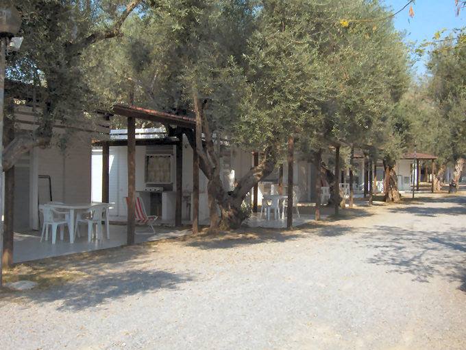 Le villette sono realizzate in muratura con tipologia trilocale da 4 e 5 posti letto. Arredate con funzionalità, sono composte da ingresso-soggiorno con angolo cucina, freezer, zona pranzo e divano letto, camera da letto matrimoniale, camera doppia, wc con doccia, tv, aria condizionata, giardino privato attrezzato. Sorgono all’ombra di querce secolari, pini marini e palme.