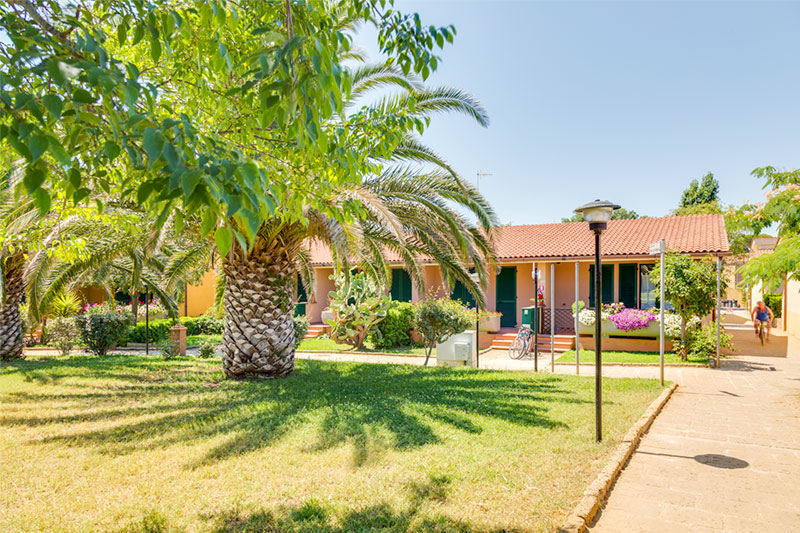 GLI APPARTAMENTI Tutti al piano terra rialzato con veranda attrezzata, disposti in unità quadri familiari, arredati in modo funzionale sono dotati di ingresso indipendente, giardino sia anteriore che posteriore, tv, frigo, telefono, climatizzatore e servizi con doccia. I Bilo Classic sono ubicati a 50/100 mt dai servizi del villaggio e a 650/700 mt dal mare, mentre i Trilo Premium situati in prossimità dei servizi del Villaggio, distano dal mare 450/650 mt. Su richiesta alla prenotazione, con supplemento da pagare in loco, possibilità di appartamento dotato di lavatrice, lavastoviglie e/o forno.
