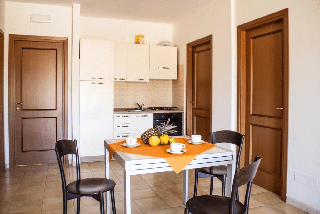 Gli APPARTAMENTI sono al 1° o 2° piano con balcone o patio, attrezzate con tavolo e sedie. Tutti con angolo cottura attrezzato e con l’occorrente per cucinare.